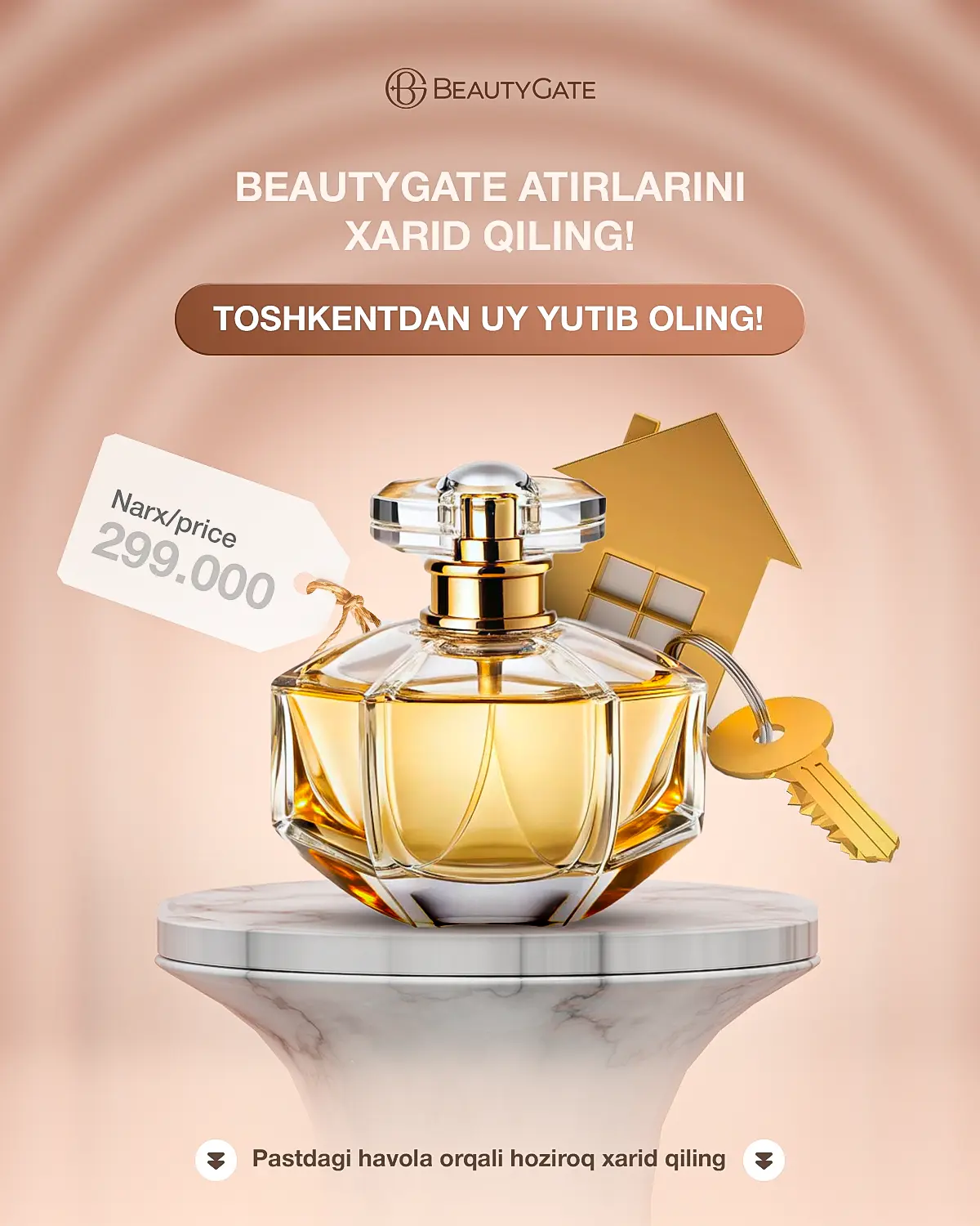 Har bir BeautyGate atiri dunyoning turli go‘shalaridan tanlab olingan noyob ingrediyentlar asosida yaratilgan. Nafis aromatlar uyg‘unligi har bir tomchida o‘ziga xos parfyumeriya san’atini ifodalaydi. Bu kolleksiya kuchli ta’sir, nafislik va uzoq saqlanishi bilan ajralib turadi.